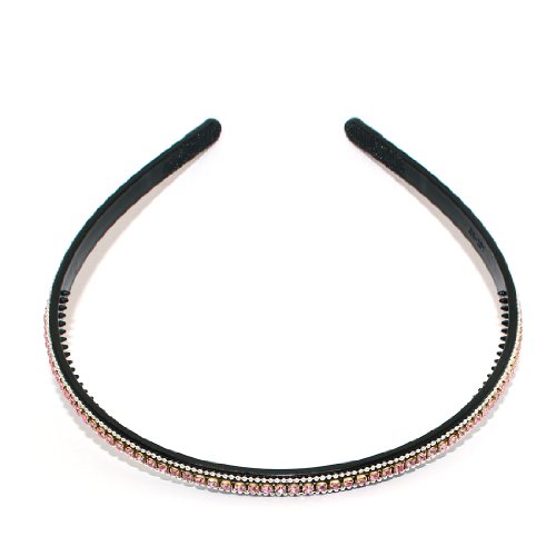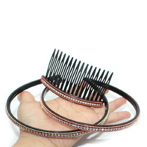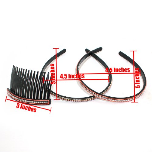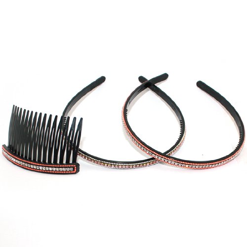 3 PIECE SET: Sparkling Gemstones Inlaid Resin Hair Comb & Hairbands - Black