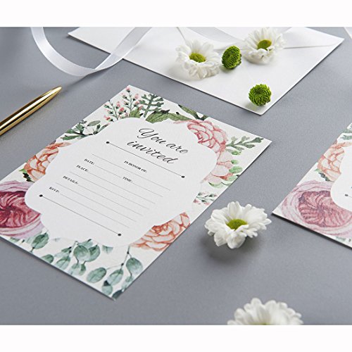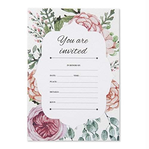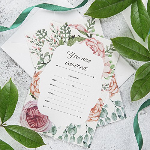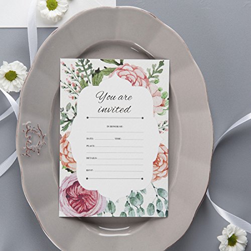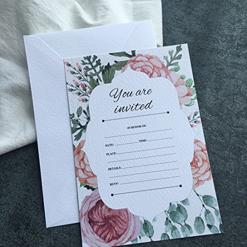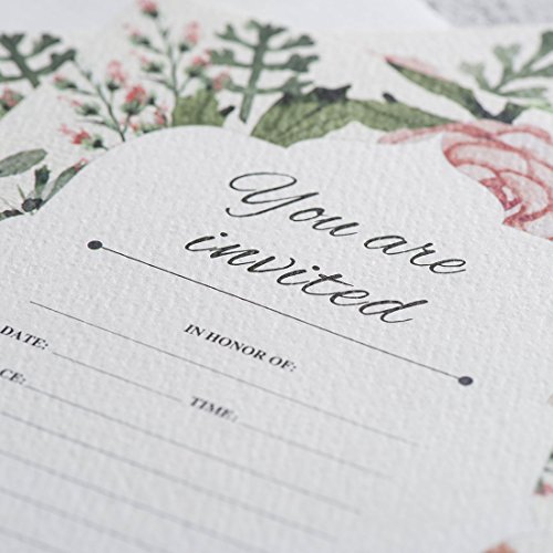 30 Fill-In Vintage Floral Invitations with Envelopes, Elegant Wedding Invitation Cards, Bridal Shower Invites, Baby Shower, Engagement, Bachelorette Party, Reception