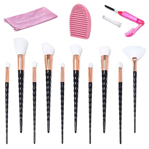 Makeup Brush Set, Beauty Star 10PCS Unicorn Make Up Brushes Black Handle Professional Foundation Blending Eyeshadow Blush Cosmetic Brush Kit...