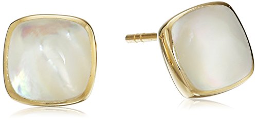 Elegant 18k yellow gold plated stud earrings featuring cushion cut 8mm genuine mother of pearl