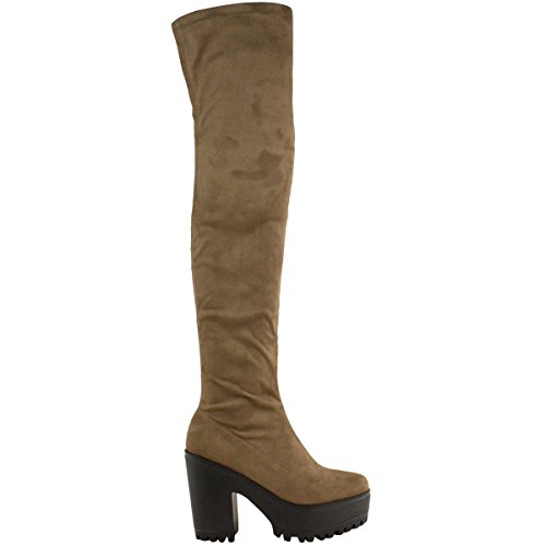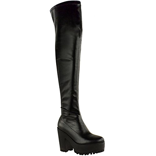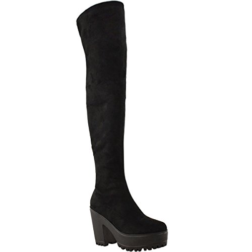 Fashion Thirsty Womens Sexy Over The Knee Thigh High Chunky Platform Heel Stretch Boots Size