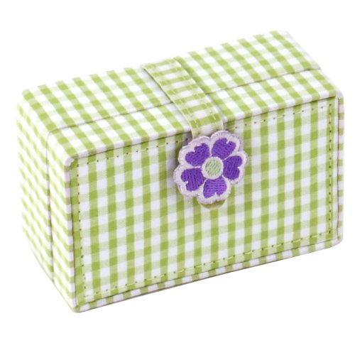 - This Mini features a green and white cross-hatched pattern and a purple embroidered flower snap closure