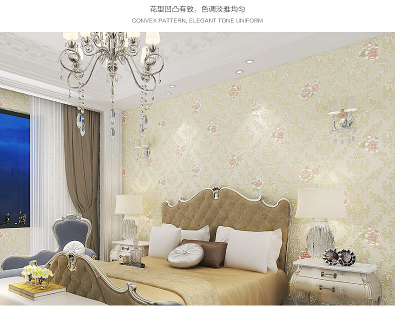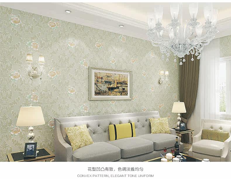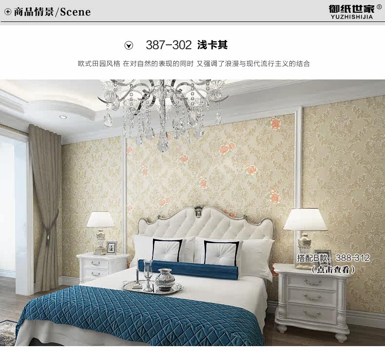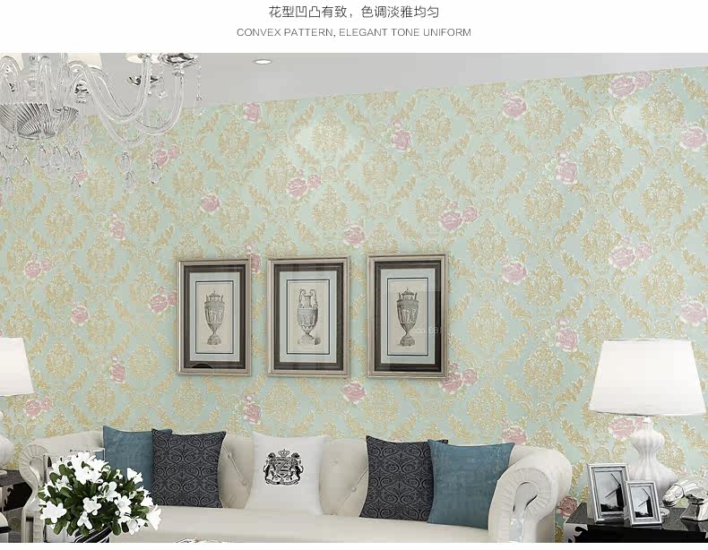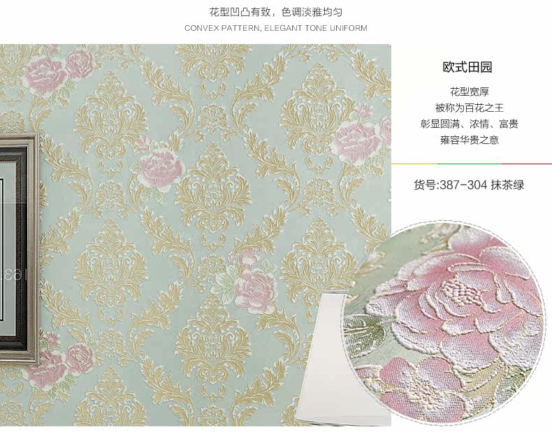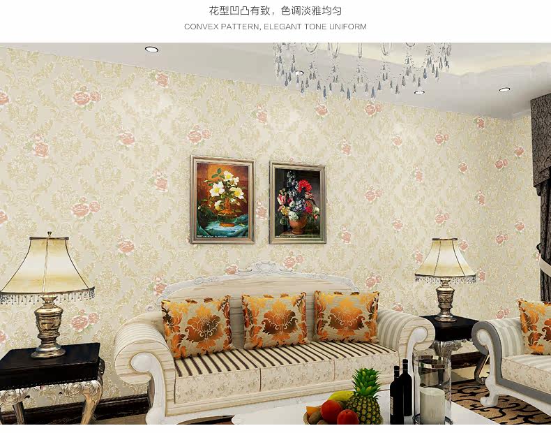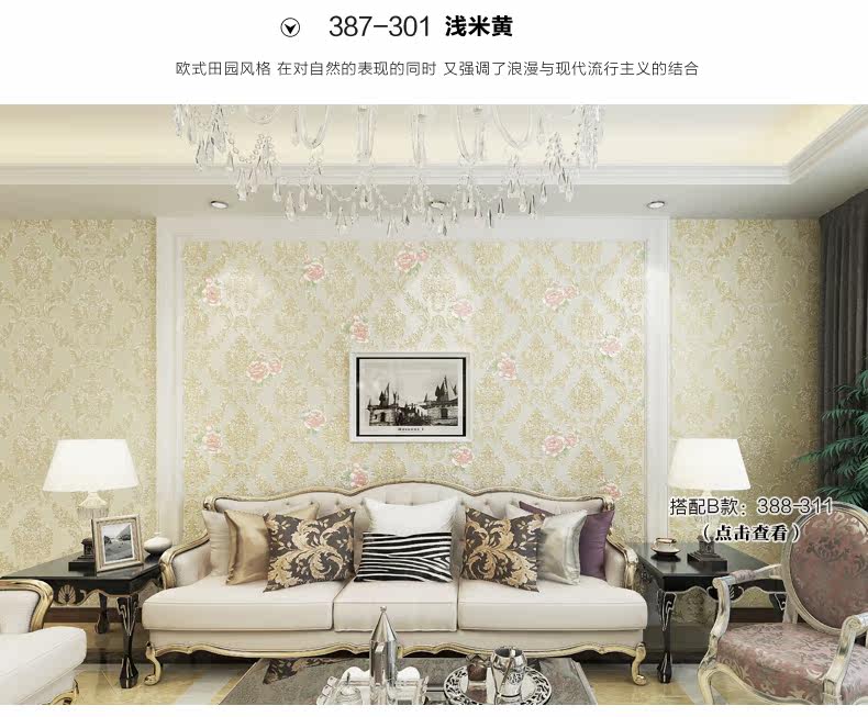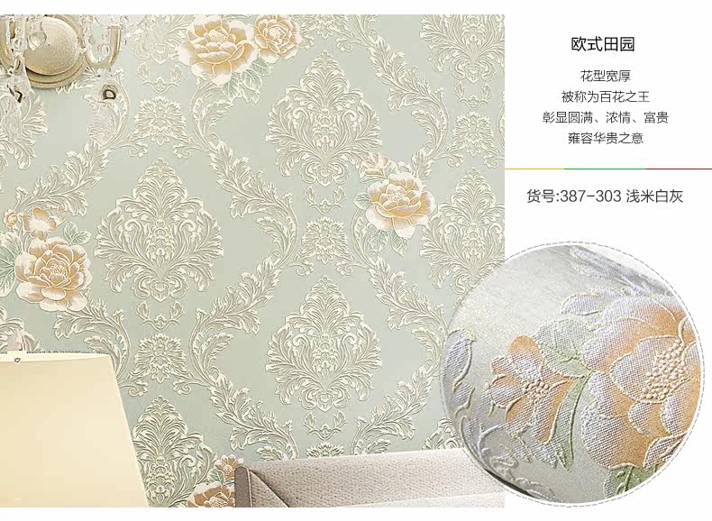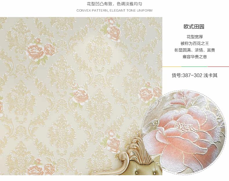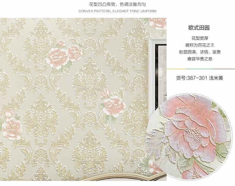 御纸世家 3d浮雕无纺布墙纸 卧室奢华温馨客厅背景墙欧式田园壁纸