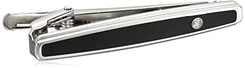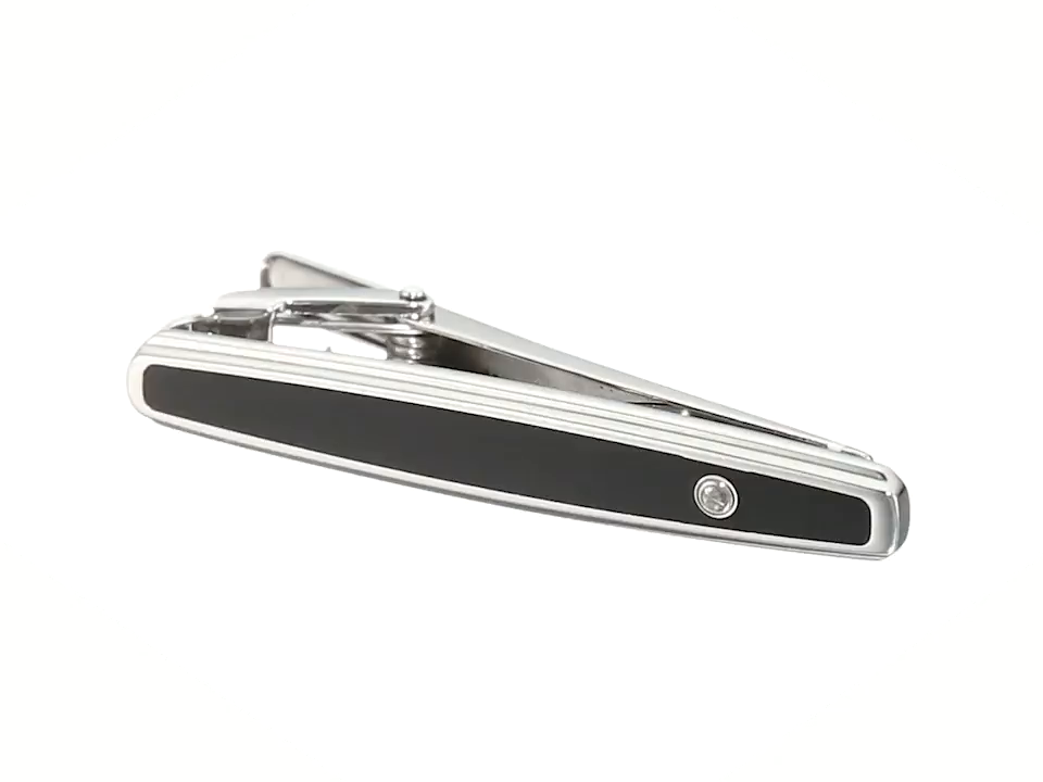 Men's Stainless Steel Black Enamel and Diamond Accent Tie Clips