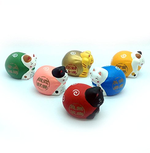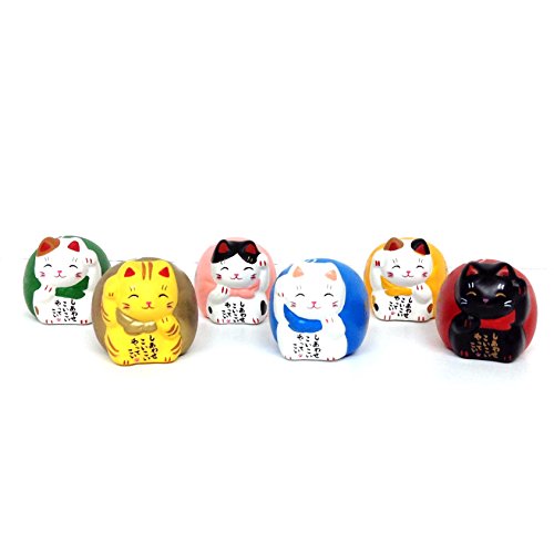 - Feature : Authentic Product from Japan / Lucky Cat Maneki Neko 6pc Set (6 Different Colors) / Item Size About 1.25 x 1 x 1" / Material: Porcelain