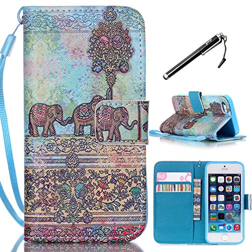 iPhone 5s Case, UrSpeedtekLive iPhone 5 Wallet Case Tribal Elephants Pattern Premium PU Leather Flip Wallet Case Cover for Apple iPhone 5/5s (Built-in Credit Card/ID Card Slot)