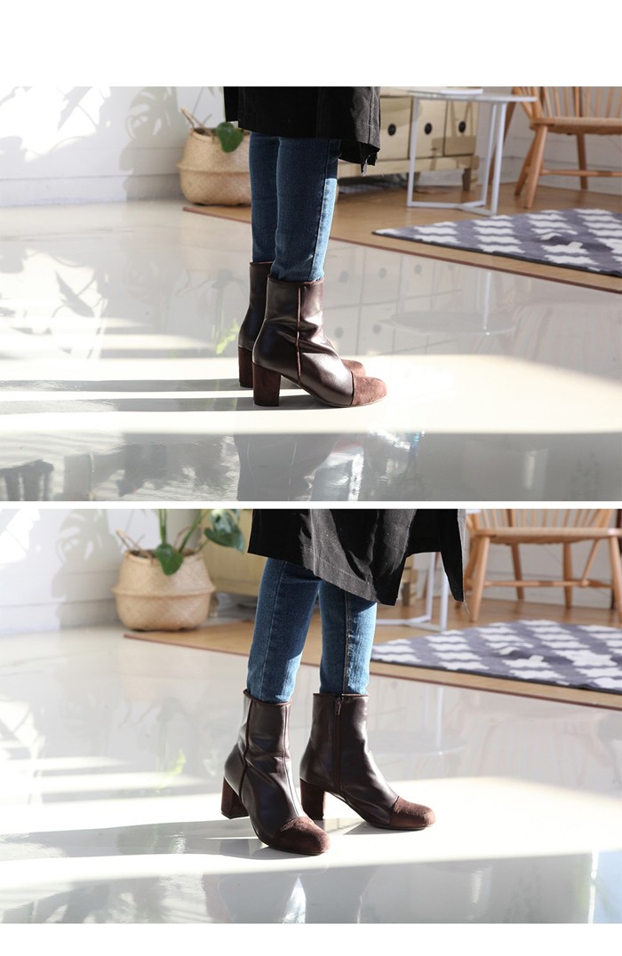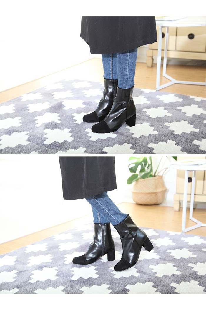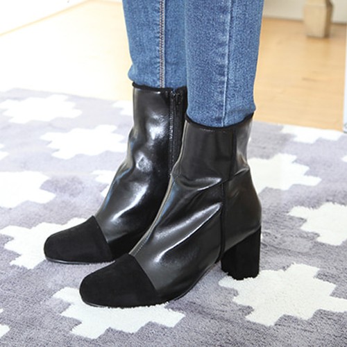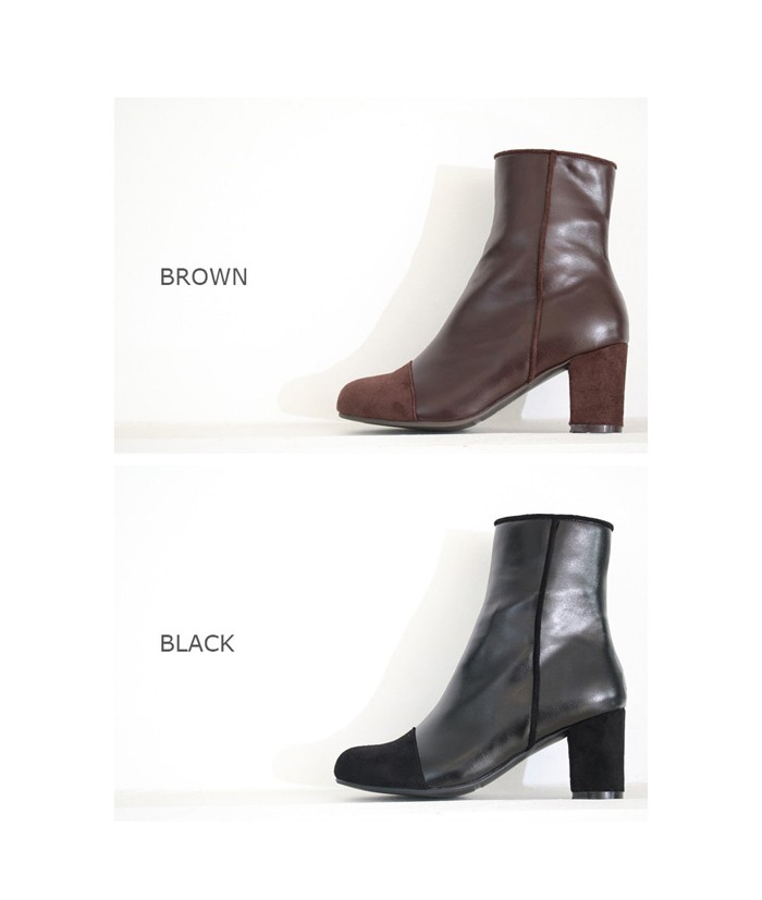 商品名:ブーティ レディース ブーティー 太ヒール サイドジッパー バイカラー 2017 秋 冬 ファッション 靴 婦人靴