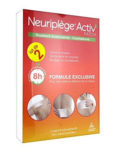 -. Feature : Neuriplège Activ' Patch 2 x 2 Patches are heating patches that help to soothe the muscular pains, to relax muscles and to relieve soreness. / These non-drug self-adhesive heating patches have an exclusiv formula that allow a diffusion of the heat during 8h in continue. Indeed, in contact with the air, the calorific agents (iron, coal, Purge exclusive mineral powder) are activated and produce heat, naturally. / Odourless, these patches are very comfortable thanks to their supple texture and are adapted for every motions.
