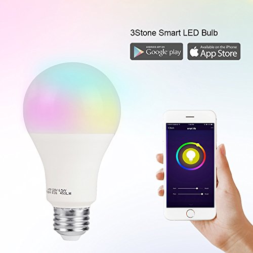 3Stone Smart LED Light Bulb A19, Wi-Fi, Dimmable White, 65W Equivalent, Compatible with Amazon Alexa