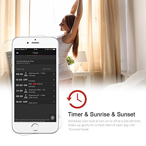Built-in Scene & Timer Option Available--- Total 8 built-in scenes is available for your to choose based on your specific needs anywhere and anytime with simply one click . You can also create customized schedules to turn the bulb with timer function.