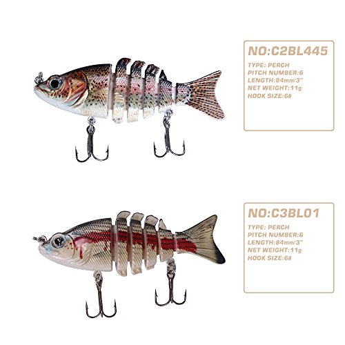 Studio : Himenlens Publisher : Himenlens Binding : Misc. Product Description Himenlens F6J06 Multi Jointed Swimming Life Fish Swimbait Hard Fishing Lure Bass Bait. Material: ABS hard plastic Size: 3.3 inch, weight :0.38 oz Our fishing lure looks and swim like real fish, and it is completely silent. We use fiber to link section, can run very flexible, so the swim action is very like the real fish and very quiet, is easy to catch fish. Key Features: Artificial Bait 3D holographic eyes Multi joint body design Triggers an instinctive predator response Equipped with high quality two super sharp rust-proof hooks All of the fishing lure models suitable for Saltwater fishing, also suit for Freshwater fishing. Multi joint body make amazing swimming action in water with uncanny realism. A slow swimming action makes it a prime target for hungry fish. Note: Each item is individually packaged. 0