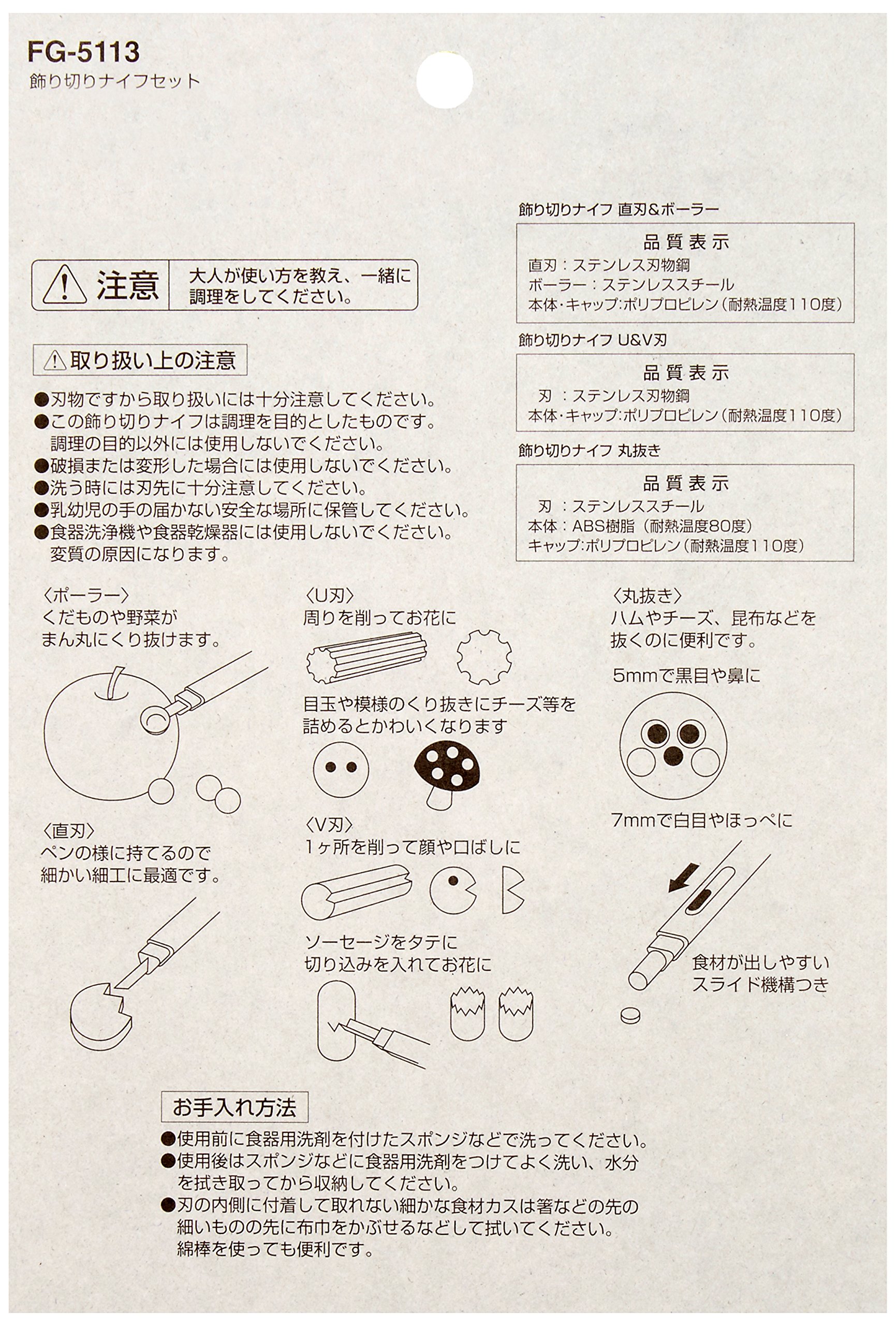 Kai Chuboos Decorative Cut Knife Set 3pcs (U & V Straight & Bowler Round) FG-5113