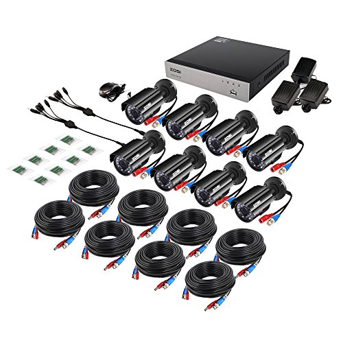 ZOSI 8 channel 1080N H.264+ DVR with 720p indoor/ outdoor cameras for true day and night monitoring with 65ft IR range
