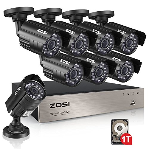 ZOSI 8-Channel 1080N HD Video Security System CCTV DVR 1TB Hard Drive + 8 Indoor/Outdoor 1.0MP 1280TVL Weatherproof Surveillance Security Camera System