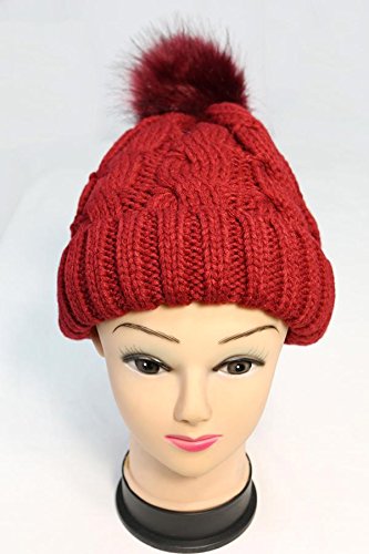 (bazza)/Accessories/Hats/DIRECT FROM USA/Pointed Cable Knit Winter Hat With Single Pom Red
