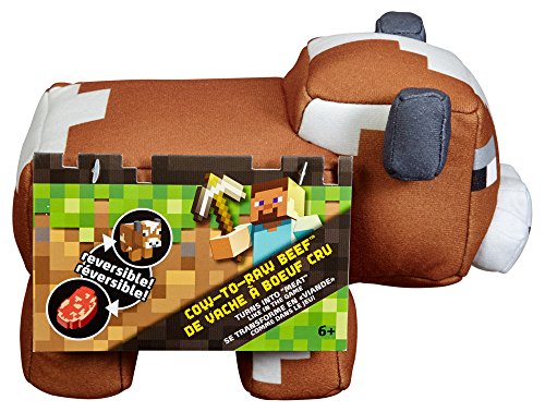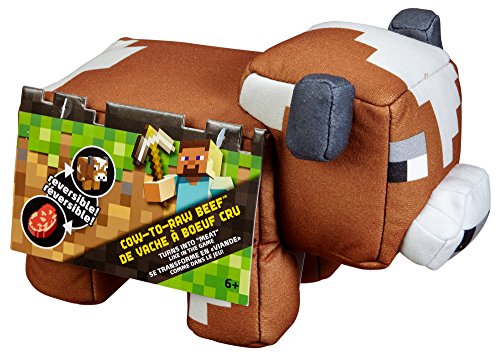 Fans of Minecraft will flip over this reversible, plush Cow! Featuring the game's signature, 8-bit style, Cow comes in soft plush form so that fans can play with their favorite animal on and offline. COW-TO-RAW BEEF plush character transforms into a delicious food source - just like in the game! Turn the cow inside out to reveal a slab of raw beef! And if you’re hungry for more Minecraft action, look for PIG-TO-PORKCHOP plush (sold separately). Includes 1 plush animal. Colors and variations may vary. Ages 6 and olderFeature