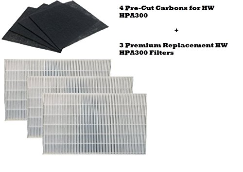Premium True HEPA Replacement Filter 3 Pack Including 4 Precut Activated Carbon Pre-Filters for HPA300 compatible with HW Air Purifier 300 and Filter R