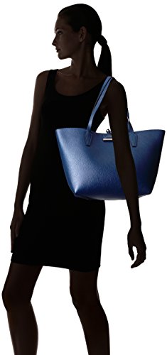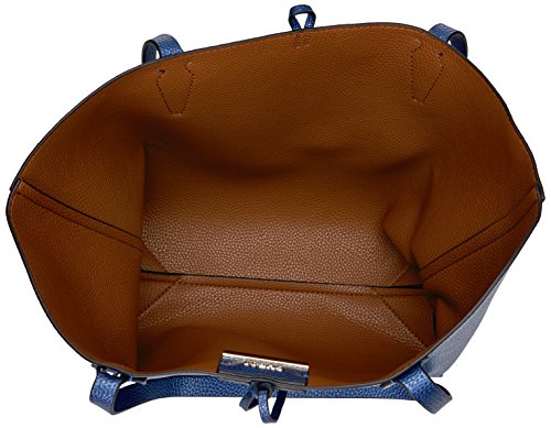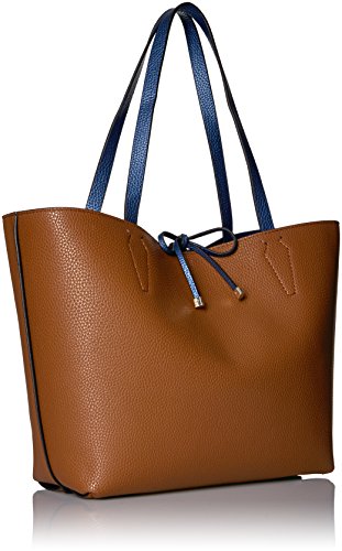 Reversible tote bag featuring solid-color body and lace-tie closure with silver-tone hardware