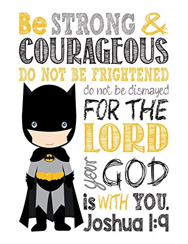 -. Title : Batman Christian Superhero Nursery Decor Wall Art P.R.Int - Be Strong & Courageous Joshua 1:9 Bible Verse - Multiple Sizes