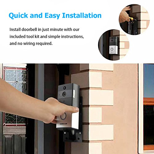 WiFi Enabled Video Doorbell Wireless with Wide-Angel Lens and Two-Way Talk, PIR Motion Detection, Day and Night Mode Automatic Swithching