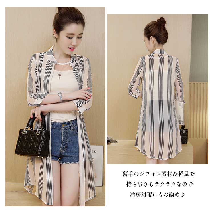 | 全8柄選べる!春夏シーズンに欠かせないitem間違いなし。人気のカーディガンにお尻をすっぽり隠してくれるロングタイプが登場♪サッと羽織るだけでUVカット!シンプルなデザインだからコーディネートしやすく、薄手のシフォン素材&軽量で持ち歩きもラクラクなので冷房対策にもお勧め♪ | |