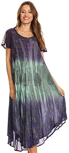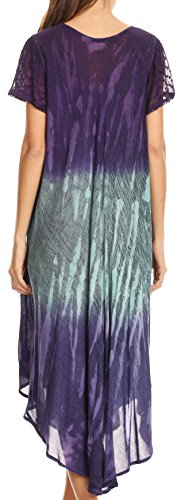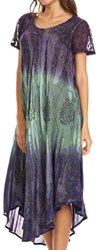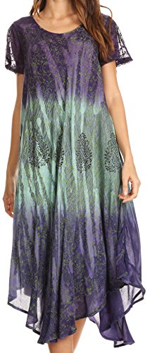 This lightweight dress features a unique hand dyed color block pattern with subtle floral print overlay. Material is semi-opaque, breathable cotton with crochet lace trim. A loose and free circle hem creates an effortless elegant drape. This dress incorporates a comfortable rounded scoop neck. Wear this dress to the beach or poolside, or dress it up with heels, leggings, trousers, belts, or your favorite accessories for a casual summer party! For cooler weather layer over long sleeve camisoles, maxi skirts, or comfy jeans. Hand wash separately in cold water. Line dry. Imported. | 100% Cotton.