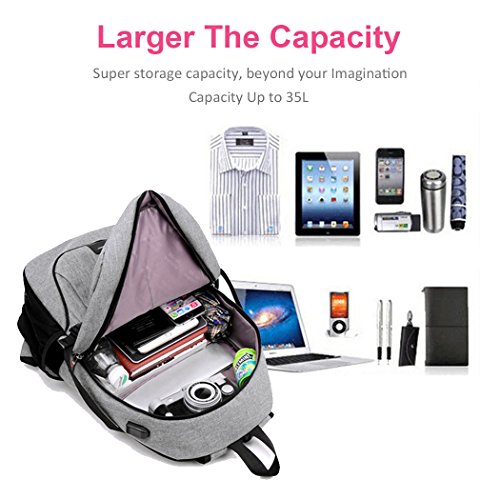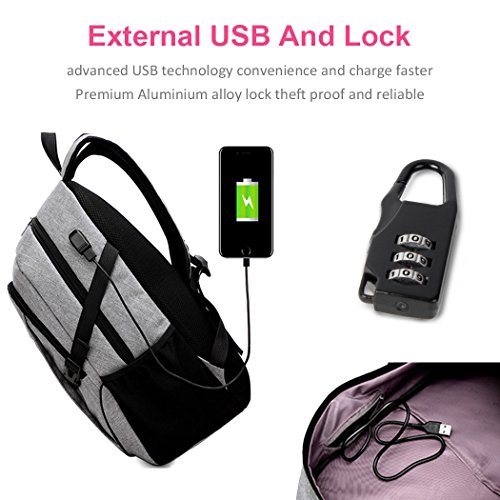 -. Feature : ★ External USB: Laptop backpack external Slim USB with built-In charging cable, conven and faster charge / ★ Larger Capacity: The laptop backpack up to 18.9x12.6x7.1 inch with dedicated Laptop compartment holds, multiple pockets provides a separated space for your Laptop, iPhone, iPad,pen, keys, wallet, books, clothes, bottle etc£¬ capacity up to 35L / ★ Precision Ergonomic Design: Two "S" Curve Padded Shoulder Straps, Offers Light-Weight Carrying And Of Force Reinforcement / ★ Premium Material: Made From Durable Eco-Friendly Nylon Fabric, Waterproof, breathable wear resistant, Seismic decompression / ★ Combination lock: Premium Aluminium alloy which is theft proof and reliable,protecting wallet and other items inside from thief and offering a private space