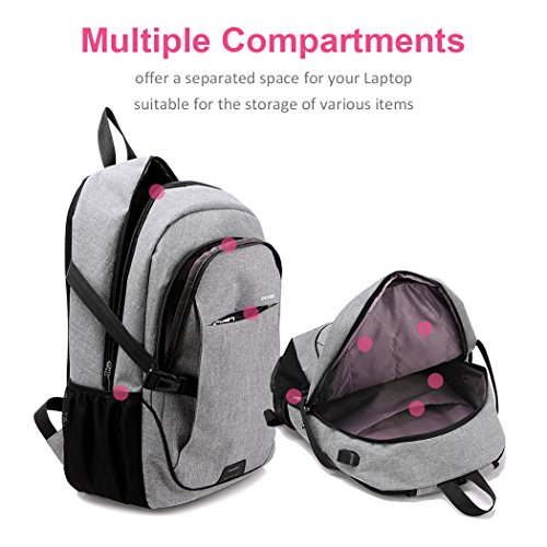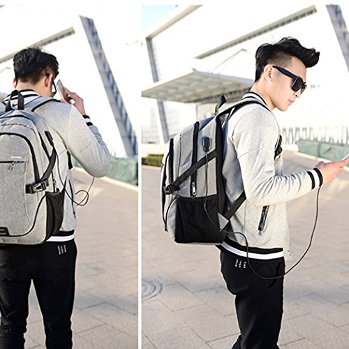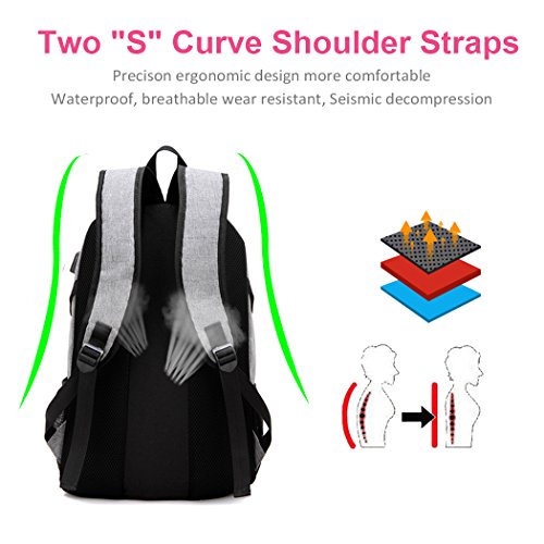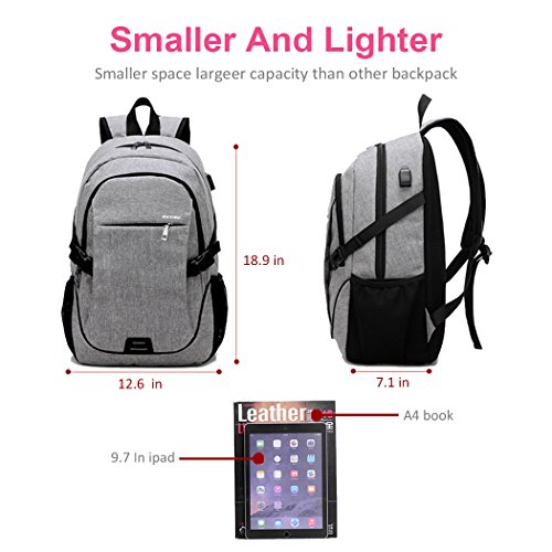 -. Title : Laptop Backpack With USB Charging Port And Lock Fits Under 17-Inch Computer And Notebook, School Business travel anti theft waterproof Larger Capacity (Gray)