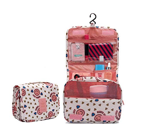 Ewandastore Hanging Toiletry Kit Portable Waterproof Cosmetic Carry Case Travel Makeup Bag Bra Underwear Pouch Organizer (Pink Smile Face)