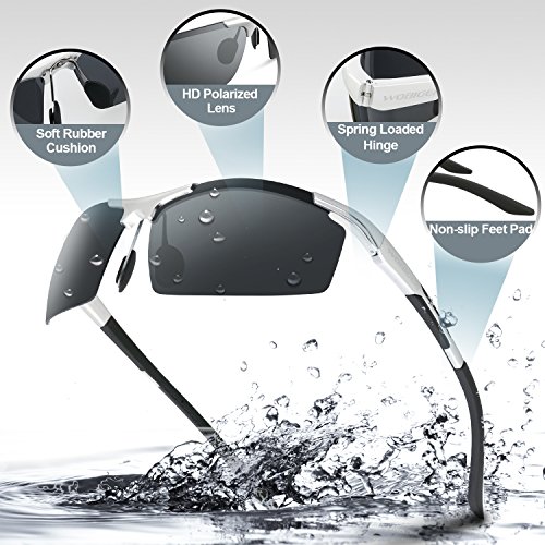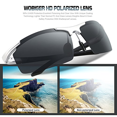 Wobiger Polarized Sports Sunglasses for Men Women Driving Fishing Cycling Running Golf Al-Mg Metal Frame Ultra Light Unbreakable Wayfarer Outdoor Sport Glasses UV Protection (silvery)