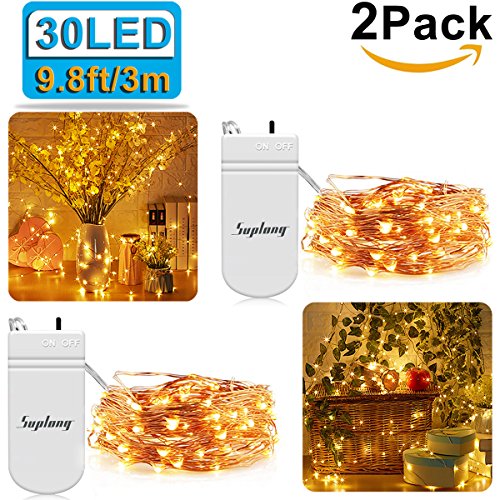 SUPLONG 2 PCS String Lights Fairy Lights 30 Leds 9.8ft Battery Operated Warm White Copper Wire Firefly Starry Lights For Home Party Decoration Crafting Costume Making
