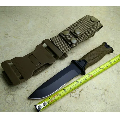 | [해외] 브라운 컬러 사냥 칼 캠핑 도구 전술 나이프 전체 또는 톱니 모양의 고정 블레이드 나이프 + 칼집! |