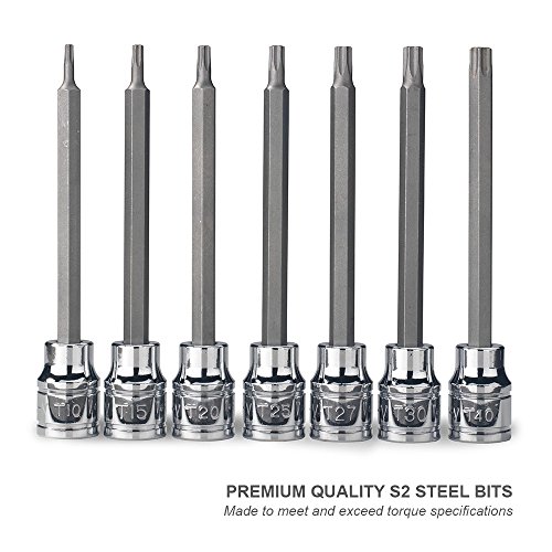 Neiko 10062A 3/8-Inch Drive Extra Long Torx Socket Set, Tamper Proof, TT10 - TT40 | 7-Piece Set