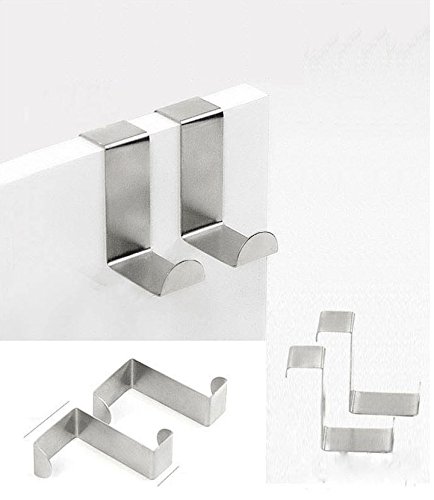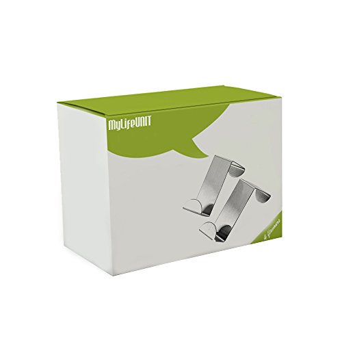 MYLIFEUNIT Brushed Stainless Steel Reversible Over Door Hook - 2 Pack