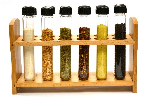 Product DescriptionTest Tube Spice Rack, Wooden Rack with 12 Borosilicate Glass Test Tubes(12) Test Tubes, (1) Wood Test Tube RackThis is the perfect starter set for someone looking to create a test tube spice rack. All of the products are lab quality and tested.0