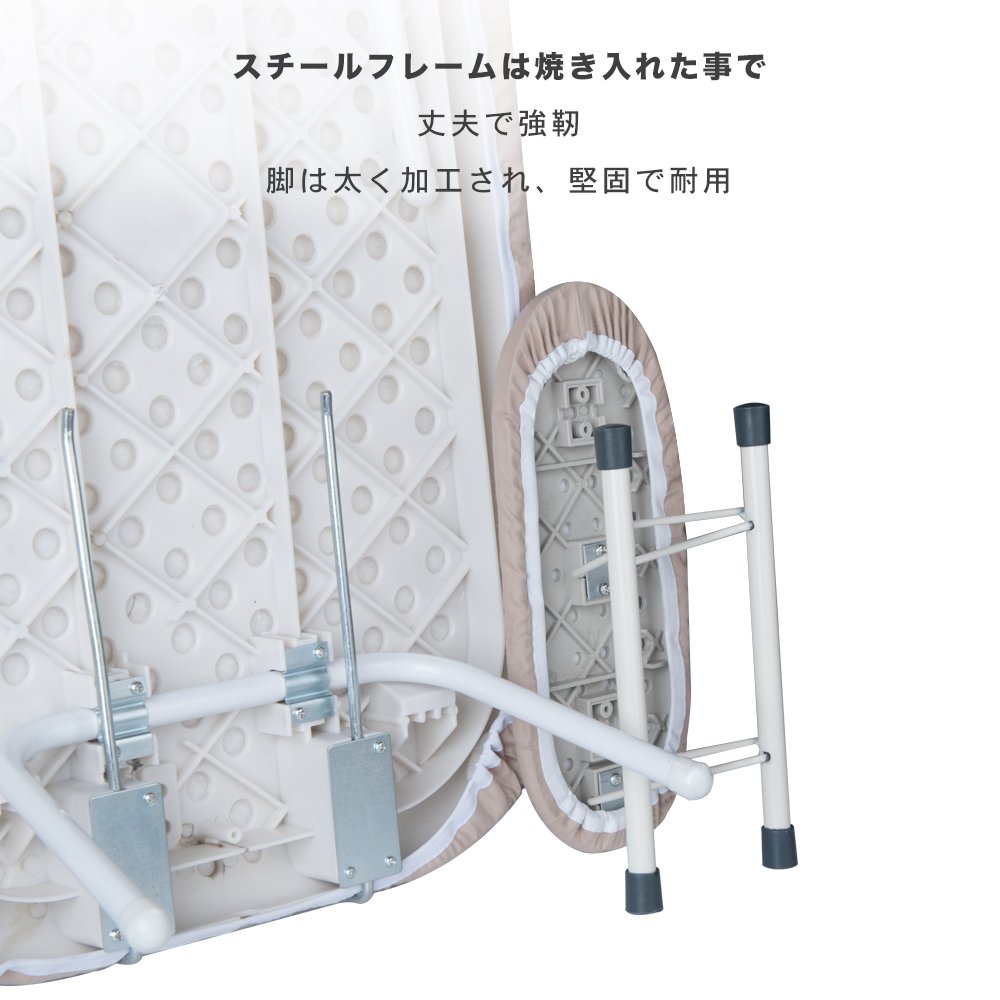 【丈夫で耐用】iOCHOWアイロン台のスチールでは焼き入れ硬化された事で、より堅固で耐用性も保証できます。太い脚では、使用中非常に強く安定しています。