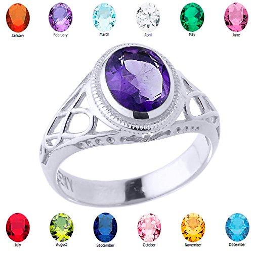 -. Binding : Jewelry -. Brand : Birthstone Infinity Rings -. Department : womens -. Feature : customizable Celtic knot band birthstone ring for women individually hand-set with your choice of solitaire oval-shaped birthday cz stone (contact seller for your choice of customized birthday month cz stone color) / elegantly handmade with genuine 10k white gold in fine polished finish / comes with free special jewelry gift box / made in the USA yet offered at factory direct jewelry P.R.Ice / ships directly from the manufacturer to the customers -. Label : Claddagh Gold -. Manufacturer : Claddagh Gold -. Model : 3686S -. MPN : 3686S -. PartNumber : 3686S -. ProductGroup : Jewelry -. ProductTypeName : FINERING -. Publisher : Claddagh Gold -. Studio : Claddagh Gold -. Title : Women's Fine 925 Sterling Silver Trinity Knot Personalized CZ Birthstone Celtic Ring