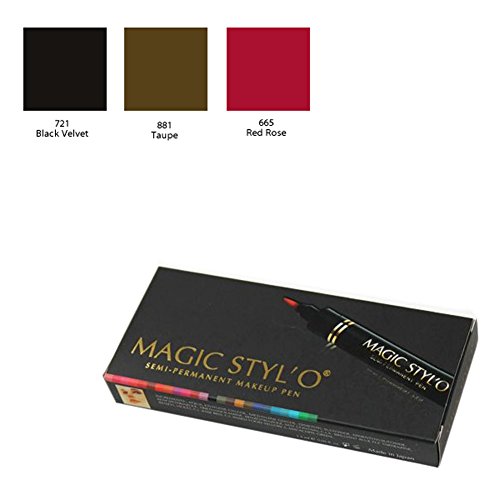 -. Binding : Misc. -. Brand : Magic Stylo -. EAN : 0096523790481 -. Feature : Bundle includes: Magic Stylo Pen in Black Velvet, Taupe, & Red Rose / Magic Stylo Semi Pemanent Makeup Pens can be used as a lip liner, eye liner, or brow liner / Use on clean and dry bare skin / Smudge proof, fragrance free, incredibly long lasting / Store vertically with the tip down -. IsAdultProduct : 0 -. Label : 3D Beauty -. Manufacturer : 3D Beauty -. MPN : 466SET3 -. PartNumber : 466SET3 -. ProductGroup : Beauty -. ProductTypeName : BEAUTY -. Publisher : 3D Beauty -. Size : 1.5 ml -. Studio : 3D Beauty -. Title : Bundle of 3 Items: Magic Stylo Semi Permanent Makeup Pen (Black Velvet, Taupe, & Red Rose) -. UPC : 096523790481