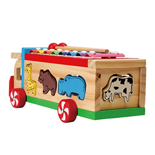 VOLKSROSE® CREATIVE HAND KNOT 8 TONE BEAT BABY WOODEN XYLOPHONE WITH 4 WHEEL TRUCK & SHAPE SORTER - PERFECT CHRISTMAS GIFT FOR YOUR KIDS