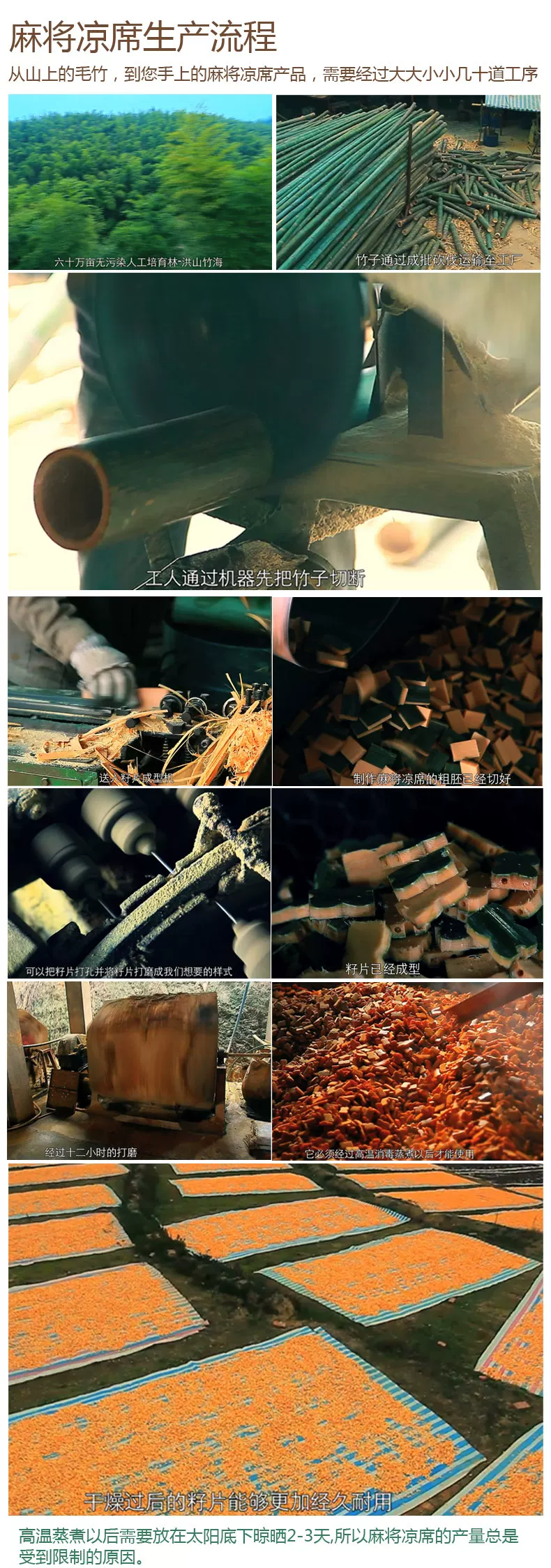 1: Mat generally consists of first green bamboo and two green fine weaving, common features are soft, smooth and cool. Mat usually the longer the more resilient, more smooth and comfortable, so the proper use and maintenance, you can ensure that it use for many years, until the fall when the weather cools, mats to close up, you can press the following method to deal with.