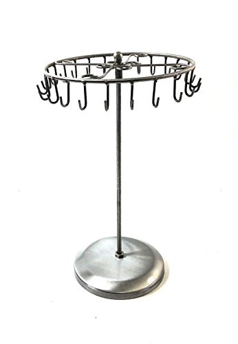 Antique Silver Color 24 Hooks Rotating Necklace Holder Jewelry Organizer Display Stand w/ Gift Box
