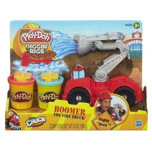 -. Binding : Toy -. Feature : Boomer the Fire Truck vehicles comes with accessories to build Play-Doh bricks, fires and water / Squirt Play-Doh water at your pretend fire with the extruder / You can make bricks for a pretend building with the nold -. Label : Games 4 Kids -. Manufacturer : Games 4 Kids -. PackageQuantity : 1 -. ProductGroup : Toy -. ProductTypeName : TOYS_AND_GAMES -. Publisher : Games 4 Kids -. Studio : Games 4 Kids -. Title : Play-Doh Diggin' Rigs Boomer the Fire Truck Toy, Kids, Play, Children