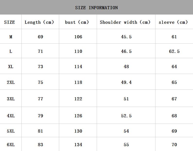 Size M, L, XL, XXL, XXXL, XXXXL, 5XL, 6XL