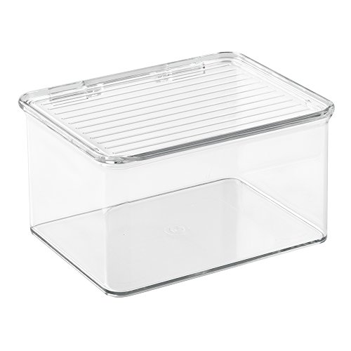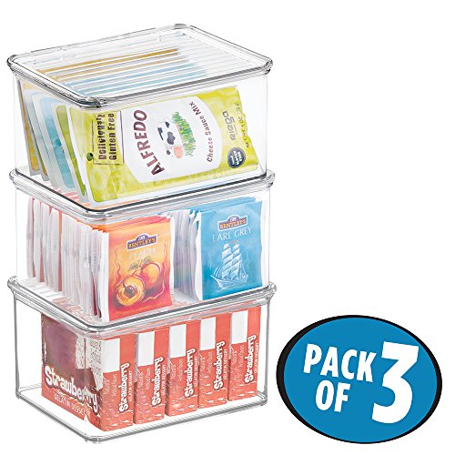 mDesign Kitchen, Pantry, Refrigerator, Freezer Storage Container Box with Lid - Pack of 3, 1.5-Quart, Clear