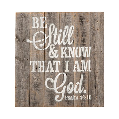 Reclaimed Wood Scripture Sign in Natural Barnwood Color with White Stencil by del Hutson Designs - Psalm 46:10 (21H x 21L x 2W)