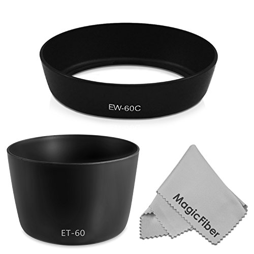 ET-60 and EW-60C Dedicated Bayonet Lens Hoods Bundle for CANON EF 18-55MM and 55-250MM Lenses - Includes: 2 Dedicated Bayonet Lens Hoods (ET-60 Replacement and EW-60C Replacement) + MagicFiber Microfiber Lens Cleaning Cloth