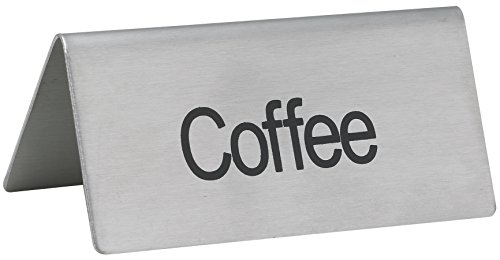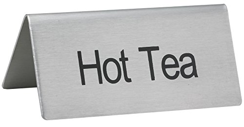 LeRose Stainless Steel Tent Signs ~ Set of 5 ~ "Coffee", "Decaf", Hot Water", "Hot Tea", "Iced Tea" ~ 3" x 1-1/2" Beverage Table Display Tent Signs