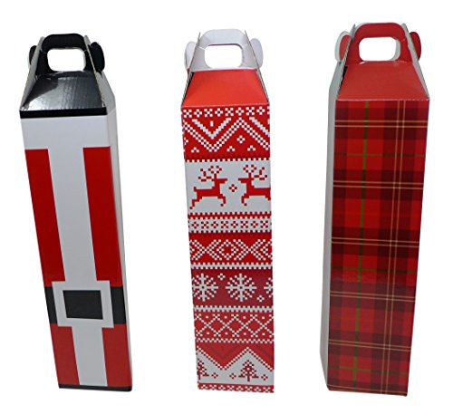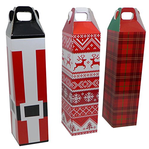 Christmas Wine Bottle Boxes (Pack of 3, Size: 15" x 3.5") | Corrugated Glossy Card Board Christmas Decorative Wine Boxes
