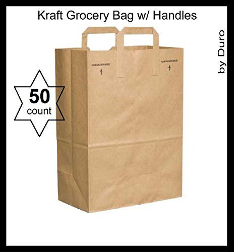 50 Paper Retail Grocery Bags Kraft with Handles 12x7x17 by Duro