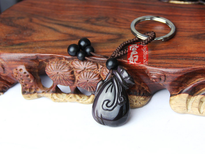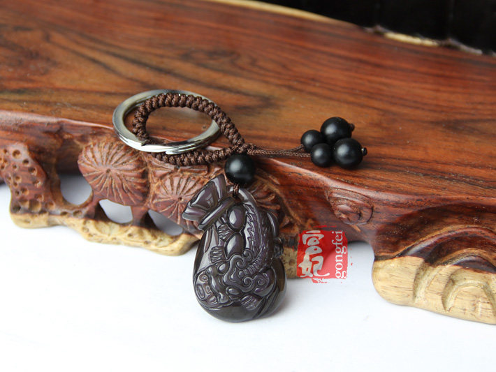 开光冰种黑曜石貔貅钱袋钥匙扣 金禄得宝貔貅挂件双雄吸财护身符